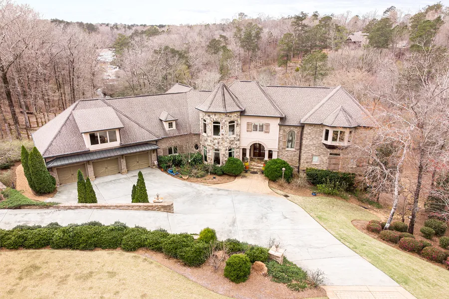 Enter the private, gated community of River Forest to discover a secluded European-style estate on a cul-de-sac that is perfect for your next chapter. Regal yet cozy, this home features amenities galore, a riverfront lot, and an equestrian-friendly location with horse riding, hiking, biking, tennis, golfing, and fishing opportunities nearby. Enjoy easy and decadent day-to-day living in the gorgeous designer kitchen with extravagant wooden cabinetry, granite countertops, a double oven, luxurious lighting fixtures, a walk-in pantry, and a sunlit breakfast area. The kitchen opens to the fireside living room with rich wooden beams and ceiling, large windows, and access to the balcony. retreat to the expansive primary bedroom with a large adjoining sitting area and access to a balcony. Entertain guests in the fireside living room with access to the balcony. The primary bathroom features a clawfoot bathtub, a separate spacious standing tower, a double vanity, and exquisite details like the rest of the home. Other highlights of the interior include a secondary kitchen with rustic character, a home theater, a climate-controlled wine cellar, and a three-car garage. The outdoor vicinity features a saltwater pool with a spa, a stone patio, impeccable landscaping, lush riverfront views, and a fenced garden area. There is plenty of space inside and this home is just waiting for you to make it your own!