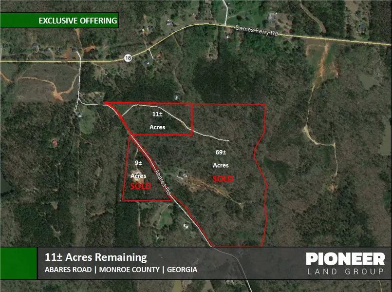 The property is located on Abares Road, of mile south of Abares Road and Highway 18. This intersection is located less than 5 miles west of the Highway 18 and Interstate 75 interchange. This property also has convenient access to Macon via Bass Road or Interstate 75.