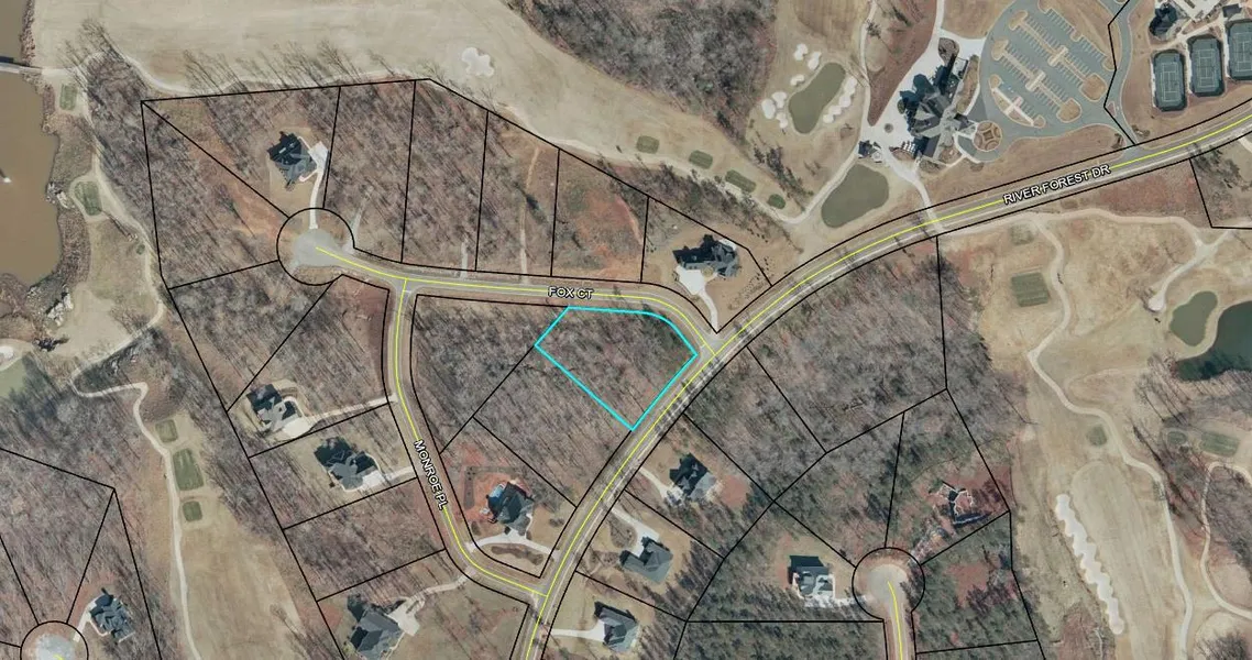 Great lot in River Forest! Over 500 feet of road frontage on River forest Drive and Fox court. Located close to the club house with all amenities including golf, pool, fitness, and much more. Perfect lot for your dream home. Utilities available! Owner financing available.