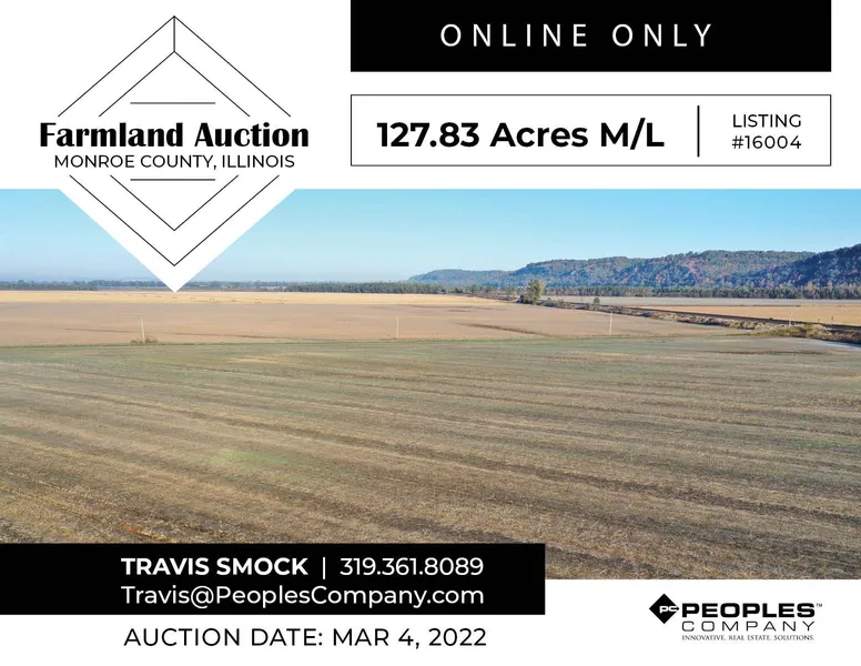 The individual Monroe County, Illinois farmland tract will be offered through an ONLINE ONLY auction where all bidding must be done online through Peoples Company's BidWrangler bidding application. Bidding is currently LIVE and will remain open until Friday, Ma...