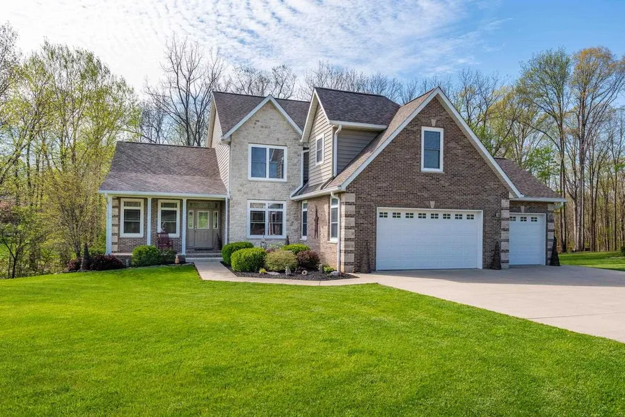 Immaculate and move-in ready sits this custom-built two-story home over finished walkout basement in the well-established Brookshire Crossing! This beautiful home totals nearly 5500 sq ft on a large 1.14-acre lot featuring 5 generously sized bedrooms, and 6 full bathrooms! Main level highlights include a formal living/dining area with large family room featuring gorgeous maple wood floors, a main level bedroom with full bath and walk-in closet, a spacious eat-in kitchen with custom Amish made maple cabinetry, high-grade stainless-steel appliances, and Corian countertops overlooking a large, covered deck. Upstairs offers a large master suite with jetted tub, double vanity sink with maple cabinets, in addition to 3 spacious bedrooms, all featuring their own bath and walk-in closet to complete the upper level of the home. The fully finished lower level is perfect for entertaining and offers plenty of extra space with a fully equipped wet bar/game room, media room, exercise room, office, and full bath plus an additional storage/craft room! The walkout basement leads you to the beautiful handmade field stone fireplace and patio hand crafted by Baker Stone works! The attached three car garage offers loads of extra space on the large estate sized lot. Outdoors you'll find mature landscaping, beautiful Redbud and Dogwood trees, a covered front porch and back deck offering a perfect scenery to relax and enjoy nature overlooking the private wooded view! Fantastic South side location ultra- convenient to Lake Monroe, and HW37/I69-and great for Crane commuters. This lovely, one-of-a kind quality-built home won't last long!