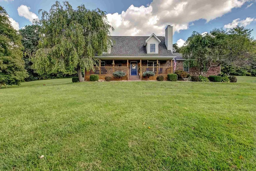 Come tour this beautiful, well-maintained property on a lovely tree-lined lot and take in the serenity of the park-like setting. This 1.5 story home with walk-out basement is situated on just over 2.5 lush acres, which allows the home owners to enjoy plenty of outdoor activities and the benefits of living in a neighborhood with estate sized lots. The backyard allows for abundant sunlight and a fenced garden has been added for planting veggies, herbs, and/or flowers. The side yard offers a shady spot for outdoor play on hot days. There's a back deck and lower level patio too but the real show stopper is the 35' covered front porch, which affords breathtaking sunset viewing and a great spot to watch your favorite people or pets play in the expansive front yard! (Drive by at dusk to see for yourself!) Inside, you'll find the main level living, dining, and kitchen areas, the laundry room with utility sink, two ample bedrooms and a full bath. There's a cozy woodburning fireplace for chilly nights and romantic ambiance. Upstairs is the primary bedroom with en suite and an expansive loft currently used as a home office for the owner's knitting business. The lower level features an oversized family room, full bath, a den (currently set up as a guest bedroom), and a "recreation" room, which could be used as a workout room, hobby room, play room, storage space, etc. The garage is a woodworker or tinkerer's dream space, with a worktable, moveable carts/workstations, a 'french cleat' wall with TV mount, and built-in shelving. The sellers are also leaving the 8'x6' shed and firewood near the evergreen trees. A new HVAC system was installed in Feb. '21, the septic pump was replaced and septic pumped in July '20, chimney cleaned in Mar. '19 & panels replaced in Sept. '19, new ceiling fans and/or light fixtures in all bedrooms, two bathrooms, and exterior, new toilets in all three baths, new smoke alarms, and added a 12' x 18' raised bed garden with cedar wood in the back yard. Schedule your personal tour and see all there is to love about this gorgeous home on an incredible lot! Negotiable items include: Riding mower, family room ceiling-mounted projector, picnic table on lower level patio, smart thermostat, washer, and dryer.