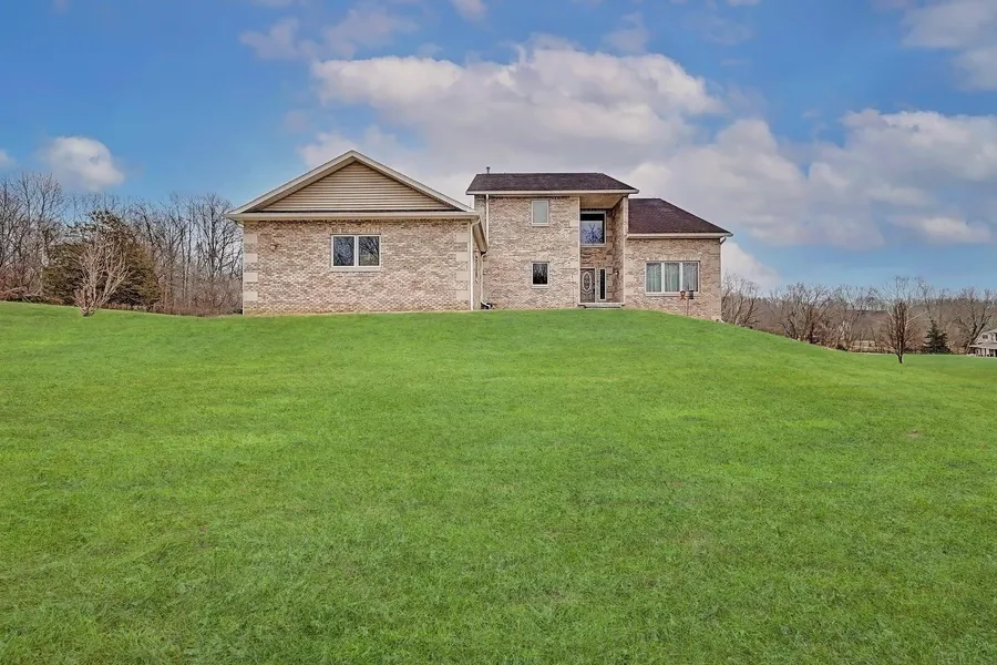 This custom built, one and a half story home over a full walk out basement is on a 2.93 acre lot and located in Tailwater on the south side and close to Highway 37. The spacious, open main level hosts the eat in kitchen, living room with 2 story windows, dining room and family room. There is also an expansive laundry room with loads of storage and a half bathroom. The owner's suite is also located on the main level with a private bathroom and two walk in closets! Upstairs, each of the three bedrooms has their own private bathroom and walk in closet. The basement is ready for your personal touch! With over 1700 square feet of unfinished potential, the sky is the limit! There is already a full bathroom and safe room. This home has been meticulously cared for and could offer quick possession if needed.