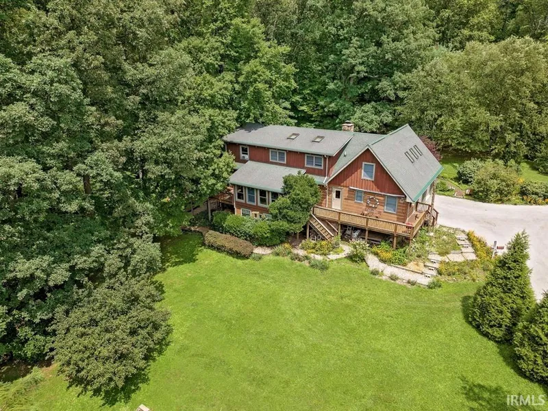 If you have always wanted a gorgeous, well-built log home on a park-like lot in a rural subdivision with plenty of peacefulness and privacy, look no further! This home is a show stopper with its rustic charm, two story Indiana fieldstone wood-burning fireplace, beamed ceilings, wraparound porch and covered porch, and serene views from every room. The sunroom overlooks the small pond on the property and the woods that surround it. The main level floorplan is well-appointed, open, and perfect for entertaining. The airy loft overlooks the living room and currently houses two separate workstations and many handmade trinkets on display. There's another enormous upstairs room used as a sewing room currently yet the sky's the limit for unlimited uses in this 35' x 18' vaulted ceilinged space. The walkout lower level also offers great, open spaces with many possibilities. A third bedroom is poss...