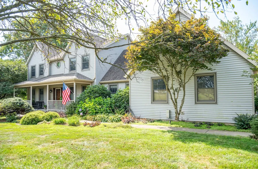Remarkable one owner, well kept custom home offering 13.8 acres near Lake Monroe. An inviting floorplan, with sunny southside dining, kitchen and living areas. For all on one main level living, there is a bedroom with closet, full bath along side and main level laundry. Wood burning fireplace in family rm, a living rm open to dining rm and a kitchen with a huge island and built in storage. Counterspace in the kitchen is ideal for those who love to cook, and kitchen windows looking towards the sunny backyard and pasture bordered by mature trees. Adjacent to the family room is a seasonal sun room offering south facing sun, perfect for starting plants or keeping favorite ones over winter. Upstairs you will find a primary suite with full bath, 2 add. bdrms near a full bath and a bonus room or 5th bedroom if needed. The bonus room is perfect for a home office setup as there is high speed internet at the home. The room sizes and closet spaces throughout the house are generous for the size of home. Several rooms offer hardwood floors. Also, the bonus room has a separate entrance from the garage. The basement offers huge storage opportunities, a canning kitchen and rec room space with sunny windows for winter garden starts. The attached garage can store 2 cars plus has a workshop rm. Another feature about the home is all new Andersen windows and enhanced insulation installed in '21. The monthly electric average in '24 was $177. The property itself lends to horses, livestock, chickens, and other farm homestead opportunities including solar energy. The Morton pole building has partial concrete floor for a 3rd car, tools and toy storage. There are also horse stalls already built in. The current owners also loved the storage capacity of being able to store their boat in winter. The home has a flat backyard that would be ideal for a pool or a lake or pond. South sun makes for perfect gardening or orchard. There is a possibility of another build site.