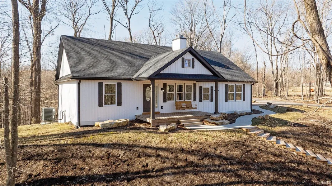 If you are looking for a new construction home with an impeccable park-like setting and acreage (4.6 acres), look no further! As you ascend the paved drive through the trees you will notice additional parking as well as views rivaling state park overlooks. This beautiful home over a walkout basement features three bedrooms on the main level, including the spacious primary ensuite, a living room featuring vaulted ceilings and a gas fireplace, a gorgeous kitchen, and a mudroom equipped with a half bathroom. On the lower level you will find another ensuite bedroom as well as an additional living space to suit all of your needs, including an additional washer and dryer hookup. This space on the lower level could easily be used as it's own suite! Throughout the home you will notice many solid walnut accents, all of which the builder has harvested from his own land. Enjoy evenings on the spacious deck overlooking the wooded back yard or enjoy time swinging on the front porch with a birds eye view of the forest. This is a true nature lover's dream! The oversized garage allows for plenty of storage, hobby space, and parking. This home was built by Legacy Homes, LLC