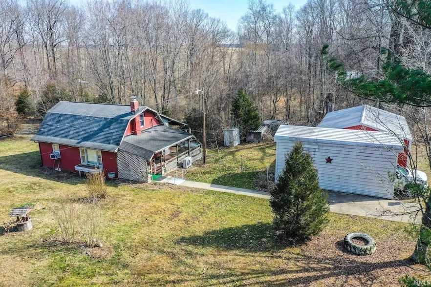 Discover country living with convenience in this 2-bedroom, 1-bath home situated on 5.3 acres in Washington Township, Monroe County. This charming one-and-a-half-story home offers 1,440 sq ft of finished living space, a detached 2-car garage, and a wood-burning stove for cozy evenings. Built in 1984, the home sits on a crawl space foundation and features multiple heating systems, central air, and a mix of public water and septic utilities. The property also has two additional outbuildings with stalls for livestock or storage. Utilities are ran to the outbuildings as well, so you will have everything you need at the flip of a switch. Located just northeast of Bloomington, you ll enjoy peaceful surroundings with easy access to city amenities. The property is approximately: 15 minutes to downtown Bloomington 20 minutes to Bloomington s west side shopping and dining district The home is within the Monroe County Community School District, including Marlin Elementary, Tri-North Middle, and Bloomington North High School. Property sells AS-IS