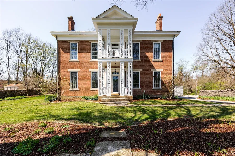 Own a piece of history in the Maple Grove Historic District! This stunning 1864 Greek Revival brick home on 7 acres is recognized on the National Register of Historic Places. Featuring 4 large bedrooms, 3 full bathrooms, and soaring 11-foot ceilings, this elegant residence showcases a two-story lace-trimmed porch, limestone kitchen countertops, and a brand-new roof, blending historic charm with modern amenities.The property offers a wealth of amenities, including an inground pool, a large white barn perfect for an entertainment venue, and a 1-bedroom, 1-bathroom ADU currently used as an apartment. The oldest log cabin in Monroe County (built in 1819) adds historical appeal, while the grounds feature a historic stacked stone wall winding throughout. The landscape includes a walnut grove, mature oak, magnolia, redbud, dogwood, and persimmon trees, as well as a Monroe County Big Tree Regist...