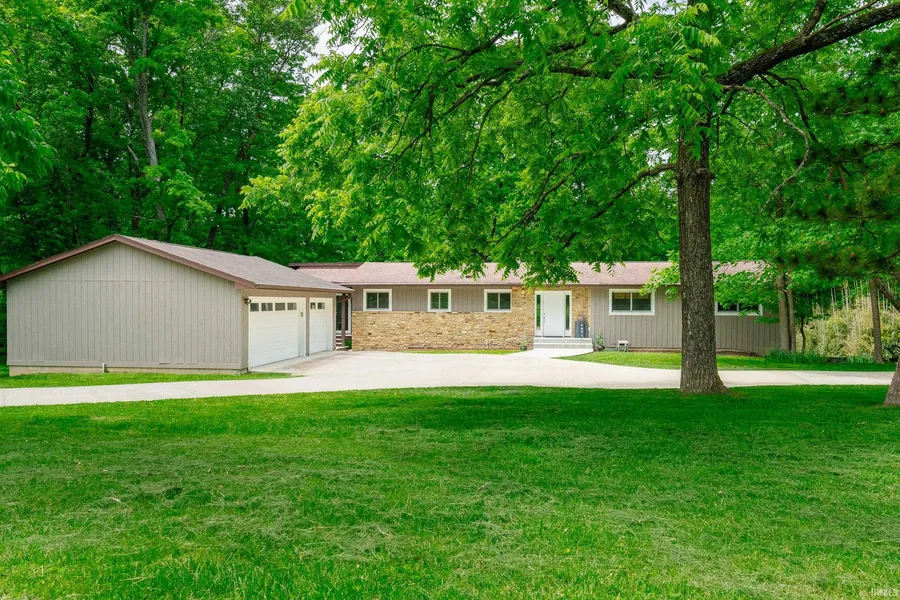 Tucked back off a quiet drive in idyllic Inverness Woods, one of Bloomington's most loved neighborhoods, and just 10 minutes from East side amenities, sits this unassuming mid-century inspired ranch home on 2.83 acres of ground. Step inside and be wowed by a mixture of natural elements: the two story stone fireplace and surround, beautiful maple hardwood floors, modern metal handrail connecting two levels of living space, and front to back views of the pool area at the back of the home and the woods beyond. This home is much more than it seems. Sweeping views of the wooded surroundings, abundant natural light, vaulted ceilings, a modern and impressive chef's kitchen spans 27' feet and joins the light-filled dining room, enclosed screen porch, main floor living space, rear decking beyond. The main floor features three bedrooms, including the first of two full primary suites, and a second ...