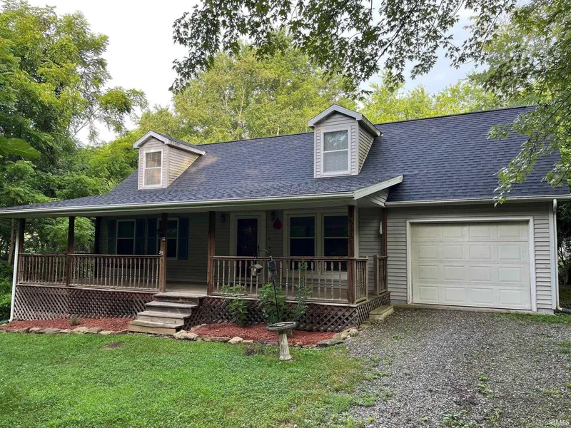 Charming Cape Cod... Welcome to this move-in ready Cape Cod home nestled in its own private oasis, surrounded by mature trees offering tranquility and seclusion. The main level features two comfortable bedrooms, a cozy living room, and a bright eat-in kitchen—perfect for daily living and entertaining. Upstairs, you'll find a spacious open area with a convenient half bath. This versatile space can easily be transformed into two bedrooms or used as a combination of a bedroom and a home office, gym, or creative studio. Enjoy a peaceful, private backyard ideal for relaxing or gardening, paired with a large open front yard that enhances curb appeal. Located just minutes from HWY 37 & I-69, this home offers easy access to schools, shopping, and more. Homeowner has allowd growth for added privacy, yet someone can clear it out some for more added yard and open the space up more if wanted. Re...