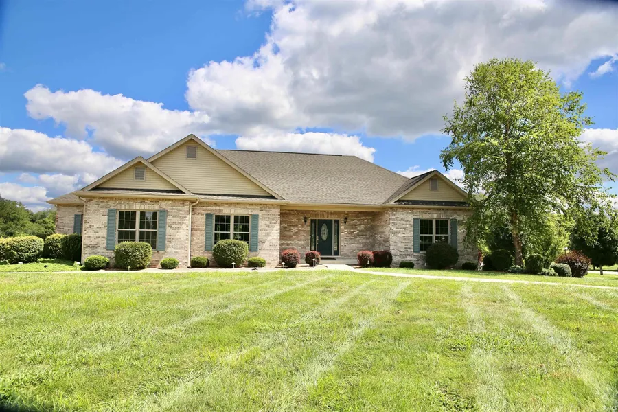 Elegant Ranch Home on 1.62 Acres in Prestigious Southside Bloomington Neighborhood. Oversized garages for 4 cars plus. Nestled in one of Bloomington’s most sought-after high-end neighborhoods, this stunning ranch-style home sits on a beautifully landscaped 1.62-acre corner lot offering privacy, space, and timeless charm. The all-brick front exterior and welcoming front porch set the tone for the quality you’ll find throughout. Inside, enjoy new carpeting, freshly painted walls, and soaring vaulted ceilings in the spacious living room complete with a cozy gas fireplace. A formal dining room offers space for entertaining, while the open-concept kitchen impresses with a large island, custom cabinetry, stone countertops, and direct access to a generous laundry room on the main level. The well-designed layout features two bedrooms and a full bath on one side of the home, while the luxurious master suite is privately located on the other. The master includes a tray ceiling, two large closets, a jetted tub, a separate tile shower, and dual vanities. Step outside to enjoy the large covered back porch with ceiling fan, overlooking a serene backyard complete with a gazebo—ideal for outdoor relaxation and entertaining. The oversized garage easily accommodates four vehicles with abundant additional space for a workshop or storage. This exceptional home offers the perfect blend of comfort, elegance, and convenience—just minutes from schools, parks, and southside Bloomington shopping.