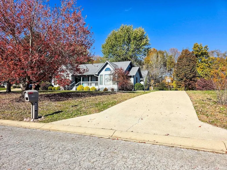 Situated on a spacious 1.59-acre mostly flat lot with a stunning wooded backdrop, this custom-built ranch-style residence with a full basement is located in Dogwood Estates on Bloomington s southeast side. Positioned at the end of the subdivision just before the cul-de-sac, the home boasts excellent curb appeal and is approximately a 15-minute drive to both Indiana University and downtown Bloomington. Having been lovingly cared for by the current owners for the past 21 years, it is now ready for a new occupant. The main level offers 2,220 square feet of finished space, complemented by an additional 1,708 square feet of finished area in the basement. The great room features vaulted ceilings, a gas log fireplace, and built-in cabinetry and bookshelves. The sunroom, measuring 15 by 12 feet, is bright and airy with vaulted ceilings, four skylights, and numerous windows. The split floor plan places the primary bedroom on the west side of the home, enhancing privacy. The generously sized kitchen accommodates a dining table, and in addition there is a formal dining room. Additional highlights include solid six-panel interior doors, oak trim throughout the main floor, Pella windows, custom oak cabinetry, a kitchen island equipped with a gas cooktop, a Generac Generator and two electrical service panels. The basement offers a spacious family room, kitchen, den, office, an unfinished mechanical room housing the furnace and two water heaters, and additional unfinished storage. Included in the sale are all kitchen appliances, washer, dryer and pool table.