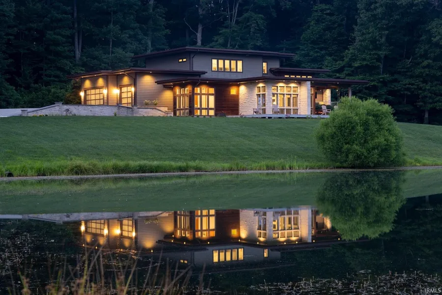 This beautiful, fully custom, Rubicon built home sits on 23 acres, spans 7182 sq ft, has a private two acre lake that is 30 feet deep and heats and cools the house geothermally! Must see this property to truly appreciate the natural and manmade beauty. The property is ideal for everyday life, but also top notch for entertaining. It boasts an outdoor kitchen, large, covered deck overlooking the private lake, home theater with a wet bar, dishwasher and limestone countertops. The oversized laundry room has a tv, desk and computer setup for multitasking or entertainment while doing laundry. Tons of storage throughout. There is a large, comfortable, secret/safe room behind a faux bookcase. Security cameras and lights are controlled by a phone app. Two bedrooms on uppermost floor are connected by an above ground tunnel, home theater in the basement has an oversized screen, gaming area, full wet bar and walkout door to get to the large lot and lake. Too many features to highlight, but here are a few: oversized Sub Zero refrigerator/freezer in kitchen, two water heaters, exercise room, large covered porch overlooking the lake.