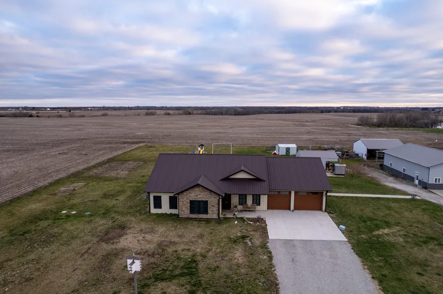 Located only a few miles south of Albia and only a 1/2 mile off of pavement we have 63.48 +/- acres with several barns/buildings and a newer home! A custom, 1 story frame, 3 bedroom, 2 bath with 1,813 square foot of living space and a 2 car attached garage built in 2021. There is in-floor heat throughout both the garage and home, custom hickory cabinets in the kitchen, and an open floor plan to suit modern-day living! An additional mudroom/laundry just through the garage and a current playroom that be used as is or as an office etc. There is also no shortage of closet space accompanying all of the bedrooms, it is a must-see!