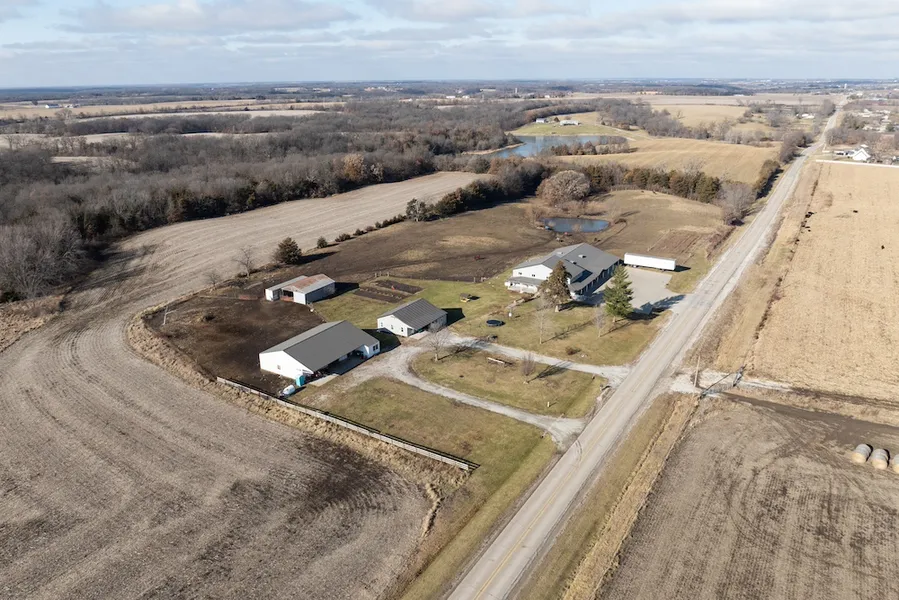 This acreage in Monroe County is located on a hard-surface road. It has a house, a steel building, a horse barn, a hay shed, a pond, and over nine acres to enjoy. It’s located just north of Moravia, 3.5 miles, south of Albia, 4.5 miles, and just over one hour to Des Moines. This acreage is also conveniently located just over a mile off State Highway 5 for great access to anywhere.This beautiful acreage has a ton of outdoor space for any activity you can think of, whether you want to have horses or livestock out in the pasture or just plenty of room for the kids to roam in the yard. The ranch-style house, being built in 2016, has an open concept floor plan, no steps, and walks right out to the patio/sidewalk. Inside, the living room, kitchen, and dining room are all one big room. The kitchen has recently been outfitted with new, custom cabinets. Next to that are two bedrooms and one full bathroom. Just off the kitchen, there's an extra utility and washroom.A short walk north is a large, steel-sided building built in 2012 that measures 60x120 feet and has a nice overhang on 2 sides. The building has a partial second level and adds up to almost 9,000 total square feet of inside space. The building was once used as a store and there's a large area of concrete adjoining the hard surface road. It is currently being utilized as living quarters, storage space and a shop area. As you step in, you'll notice a large, commercial-sized kitchen. This makes the perfect spot for big jobs like canning or processing your own food. Directly adjacent to that is a big, open space that could be utilized for many different things. It has a walk door and an overhead garage door. On the far side of the main level is another overhead door and walk door going into a large shop area. On the backside of the main level are currently living quarters. There are two bedrooms, a full bathroom, and also a full-sized kitchen. As you go upstairs, you'll notice another two bedrooms, another full bathroom, and a big, open space along with extra storage.On the south side of the property is a 40x60 barn also built in 2012. It's currently being utilized for horses, equipped with three stalls and extra hay storage. Also on the backside of the horse barn, you'll notice the pasture directly adjoins it. There's also another steel building currently being utilized for hay storage and could also be used for a loafing shed. The pasture is about 7 acres and is currently being used to graze horses. The property has a nice pond right in the middle of it.There is no electricity on the property; however, it's completely outfitted with propane heating and lighting, along with in-floor heat in most of the large buildings.Whether you want a move-in ready acreage or have visions of transforming the place, this property is waiting for you. You could simply put the big building back the way it was originally built and have a big storefront. Or maybe you'd like to finish off the inside, add more bedrooms, and make it one large house. Or simply use the rest of the storage space for all your hobbies that you might have. Another great option could be an outfitter's cabin. With all the bedrooms in the big building, the house, and all the open space, this would really make a good area to gather. Either way, there's a ton of opportunity on this property. Throw in the fact that Rathbun Lake is less than 10 minutes away, there are a ton of recreational opportunities like boating, fishing, golfing, hunting, and Honey Creek Resort/Waterpark right down the road, there is certainly plenty of fun to have close by.If you're interested in viewing this property, please call Hersh Smith at (641)-941-6884.