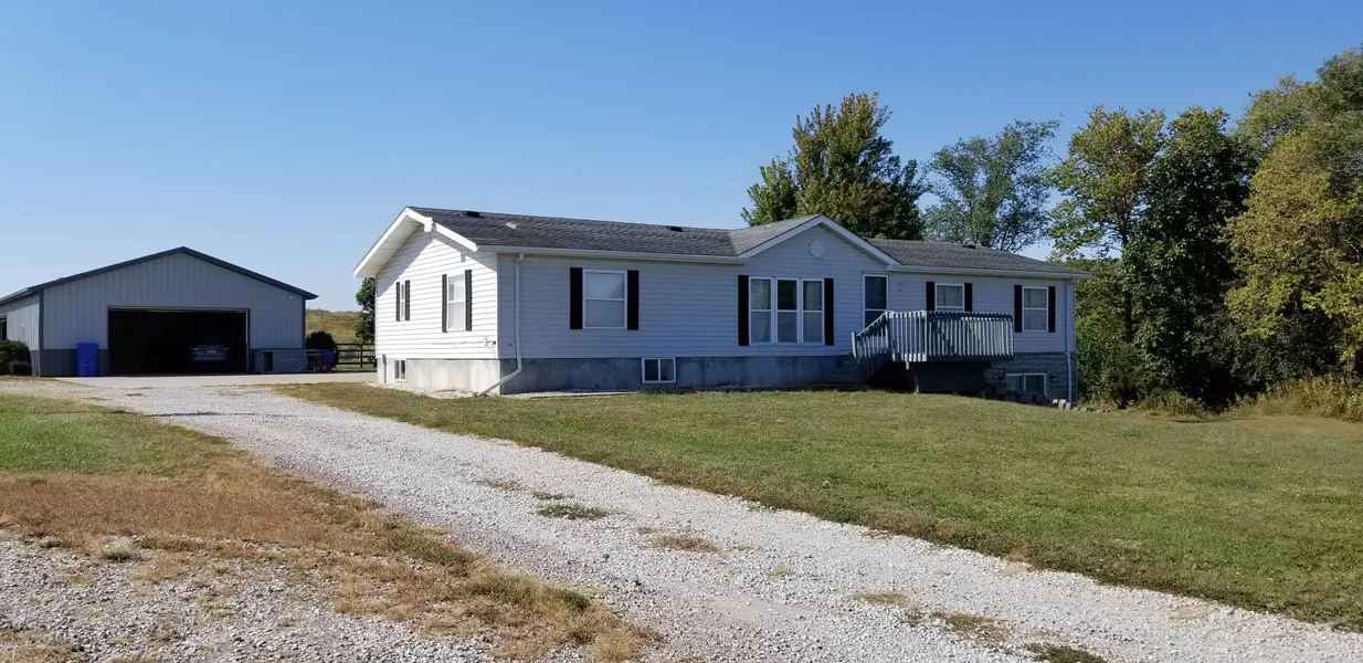 This attractive Monroe County acreage offers 16 +/- acres of rural living on paved Monroe-Wapello Road with a spacious home, functional outbuildings, open hay ground, excellent timber and beautiful views of southern Iowa landscape. This 3,600 +/- square foot manufactured home features a beautiful kitchen with an island and bar seating open to 2 living rooms, 3 bedrooms (one with a full bath and walk in closet), bathroom, and sunroom. The full walk-out basement has another living room with a bar area, more entertaining space, bathroom, laundry and storage. The exterior boasts a 30x60 detached metal garage built in 2001 with heat and electricity and a 24x48 metal pole building with a 12x48 lean to perfect for storing machinery or equipment. The remaining land is a mix of open hay ground and timber with trails. This is an extremely rare opportunity for an acreage on a paved road with privacy and a place to enjoy a rural lifestyle with plenty of room to play.