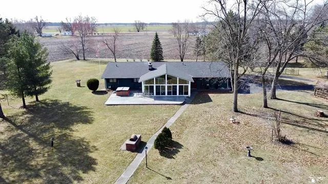Beautifully Maintained Country Retreat on Over 5 Acres! Welcome to your private oasis just 7 miles from shopping and restaurants! This stunning property offers the perfect blend of tranquility and convenience. Featuring 3 bedrooms and 2 bathrooms with heated floors, this home provides cozy comfort year-round. Enjoy the spacious sunroom—also equipped with heated floors—perfect for relaxing or entertaining. An atrium adds a unique touch of charm and natural light. The long private driveway leads to an attached garage and a versatile pole barn equipped with water, ideal for storage, hobbies, or workspace. Step outside to a stamped concrete patio complete with a hot tub, perfect for unwinding under the stars. This country setting is a rare find—peaceful, spacious, and beautifully maintained.