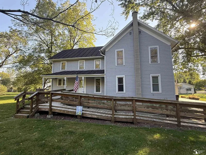 This Sprawling 2,124 Sq. Ft. 2 Story Farmhouse sits on a breathtaking 1.24 Acre Country Lot with Serene relaxing views. Whether it is the beautiful deep backyard with Mature Trees or the breathtaking view out the front of house that offers a line of Beautiful Trees Across the street that nestles in and hides the Raisin River that lies below. Patio area great for entertaining and relaxation. Large 2.5 Car Detached Garage w/ 220 Electric and Asphalt driveway. Additional outbuilding/barn with workshop cover all your outside storage needs. Enjoy Peace of mind with the Metal Roof, City Water and Whole House Generator that remains. Additional Updates include Furnace and Central Air in 2024. Some Updated Windows. Newly renovated Bathroom and Main floor Bedroom with 1st Floor Laundry. Washer and Dryer Included. Large eat-in Kitchen with Stove and Refrigerator to remain. Possibilities are endl...