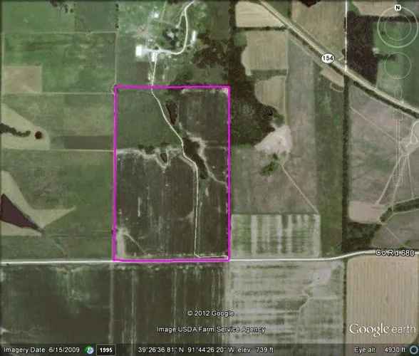 50.2 acres tillable cash rented at $6500/year. 1 year lease (2012) paid up-front in April. Small pond on site. Located just East of Perry.