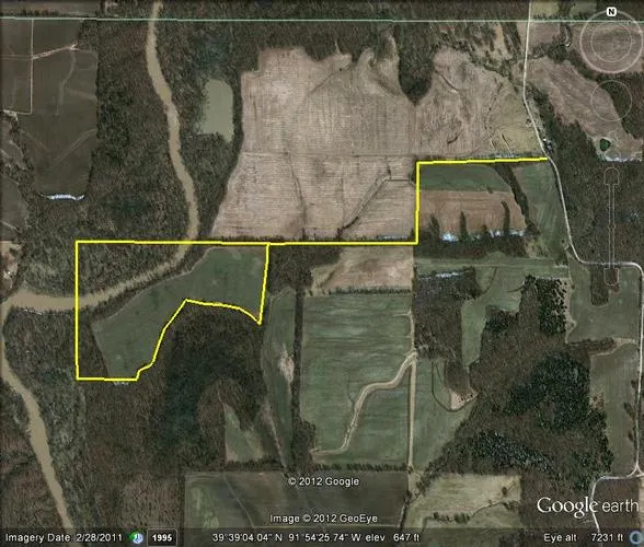 32 acres tillable (Salt River) bottom ground paying $170/acre cash rent. 2 year lease (2012-2013). Remaining agreage is timber and river. Excellent hunting tract!! $3500/acre.