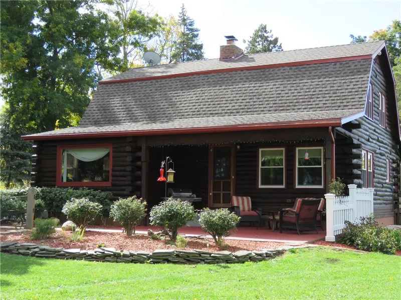 Welcome to Paradise with the most serene setting nestled on a hill overlooking meadows and woods. A true log home with the most beautiful sunsets sitting on your covered front porch . Home offers 1.13 acres with a 2.5 car detached garage and a shed both with new roofs. Great room with a stunning stone fireplace with an insert and a corrugated stainless liner, formal dining, and a country kitchen. 3 bedrooms up and the finished lower level which town has included in the square footage has 2 egress windows and a door to outside. . Lower has a family room and a bedroom. Many new windows, sellers have converted to propane heat from oil, hot water tank is 2019. New septic in 1991, home has public water, main house the roof is 2010. Includes appliances, sellers are heading south! Delayed negotiations till Oct 11, 2020 at 2:00 p.m.