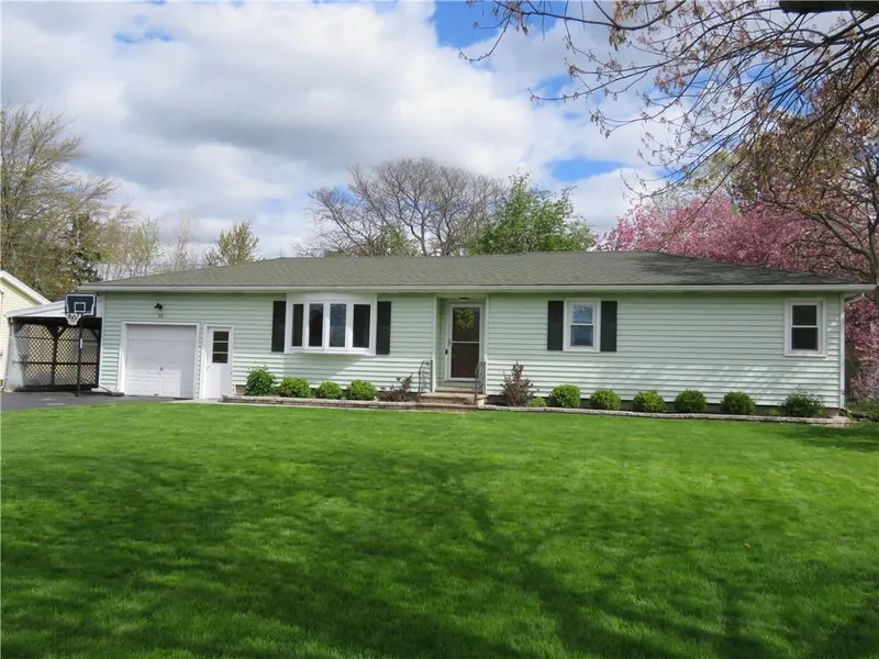 Charming ranch well maintained throughout. Living room with a bay window and hardwood floors. Eat-in kitchen also has a bay window and includes all appliances. 3 bedrooms all with hardwood floors. Extra space in the partially finished basement with a powder room. New furnace and A/C 2018. Large back yard with a covered porch wonderful to sit out in any weather. Garage plus a car port. Spencerport Schools. Delayed negotiations till Sunday May 16 at 2:00.