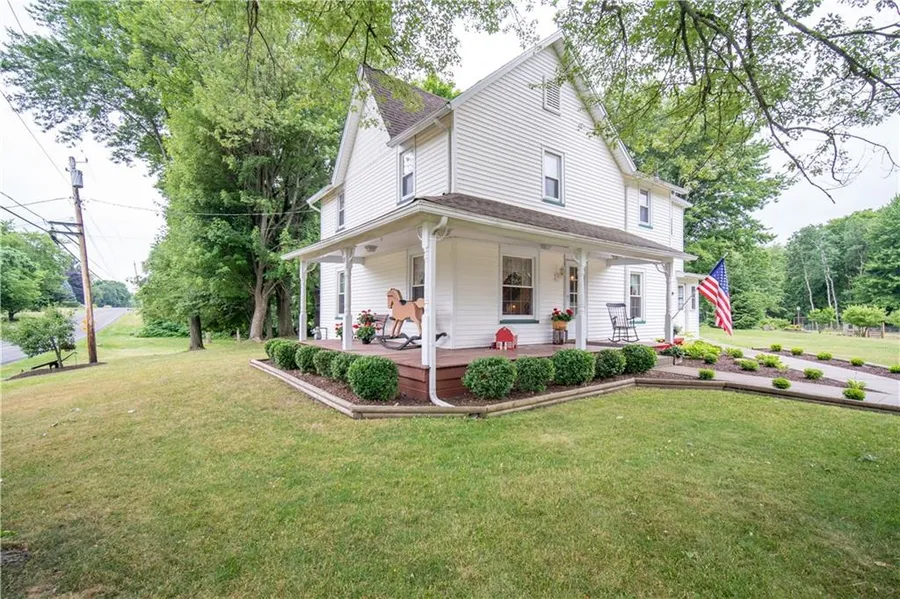 Beautiful, well maintained 1850's home sitting on over 4 acres of manicured land in the Churchville Chili school District! Own your own Field of Dreams! This property is perfect for hosting large gatherings with lots of room for activities. It also features a large barn with a new roof, some updated windows, the furnace is 2 yrs. old, AC is 2 yrs. old, new flooring, the roof was replaced 6 years ago and a new patio. Stay cozy inside this beautiful farmhouse in the colder months by heating with gas, the wood stove or the gas stove. The first floor offers a full bath, laundry and a den/study. Upstairs you will find 3 bedrooms and a 'sleeping porch'. Delayed negotiations until 7/11. Open House 7/9 from 1-2:30pm. Delayed negations until 7/11 at noon