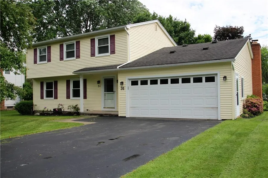 Well maintained Perinton Town, Penfield address, 2035 square foot Vinyl Sided Colonial on a quiet street with Fairport Electric. Features 4 Bedrooms 1 1/2 baths, Family room Dining room combo with wood burning fireplace and sliders to a concrete patio for great entertaining. Good size kitchen with ample Maple cabinets, Formal Living Room and In-home office and 1/2 bath complete first floor. 4 Bedrooms on Second floor with updated full bath. Hardwoods under carpets in upstairs hallway, Bedrooms, Formal Living room and Office. Full basement including under Dining Room addition completed in August 2003. 2 car attached garage, House is equipped with additional Electric panel for whole house generator. Kitchen appliances included. Hard wired speakers throughout the house for Music enjoyment. Computer Internet Network to office, Living and Dining rooms. Delayed showings begin Thursday June 9th...