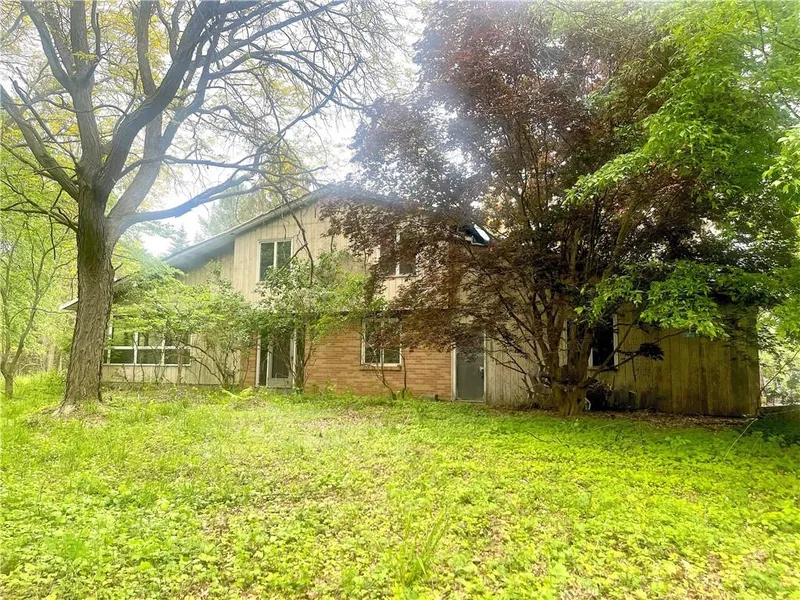 MAZING 1764 SF CONTEMPORARY***LIGHT FILLED*** HOME***NESTLED IN THE WOODS***w/ SPECTACULAR GREEN VIEWS FROM EVERY ANGLE!!**********On Almost 6.5 SECLUDED, PRIME ACRES in BEAUTIFUL HONEOYE FALLS just steps to THE LEHIGH VALLEY TRAIL!!!********** Includes: Open, elevated eat-in kitchen CENTERED IN THE HEART OF THE HOME w/ a WALL OF WINDOWS OVERLOOKING THE VERY SPECIAL LOT, Formal dining room w/ DRAMATIC CATHEDRAL CEILING, SKYLIGHT, PARQUET HARDWOOD FLOORS & WINDOWS ALL AROUND, BREATH TAKING 2 STORY FORMAL LIVING ROOM w/ HARDWOOD FLOORS, 1st floor office w/ PARQUET HARDWOOD FLOORS & closet (can also be used as a 1st floor bedroom) & convenient half bath! OPEN TURNING STAIRCASE TO THE 2nd floor which includes a MASTER SUITE w/ ATTACHED FULL BATH, 2 additional bedrooms and a full family bath!*****THIS HOUSE NEEDS COMPLETE REHABILITATION*****but would BE WELL WORTH THE EFFORT on THIS RARE PIECE OF ACREAGE IN THIS LOCATION!!! - BEING SOLD AS-IS – SHOWINGS BEGIN ON TUES 5/30 – OFFERS DUE: TUES 6/6 @ NOON -