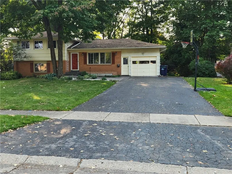 Great 3-bedroom, split level home, in central Greece. This home has an array of features including a kitchen with cherry cabinets, granite countertop, marble flooring, built-in oven, microwave and gas stove with range-hood exhaust. Bathrooms also with granite vanity tops and marble floors. A large family room which can be converted into a bedroom. Red Oak Parquet floors in the formal dining/entrance areas and hardwood floors in the bedroom areas. A double driveway with a stamp concrete walkway leading to the front entrance. A large external deck overlooking the private backyard for family gatherings. This home is located in walking distance to Bernard Park and 2 major grocery stores. A flourishing neighborhood.