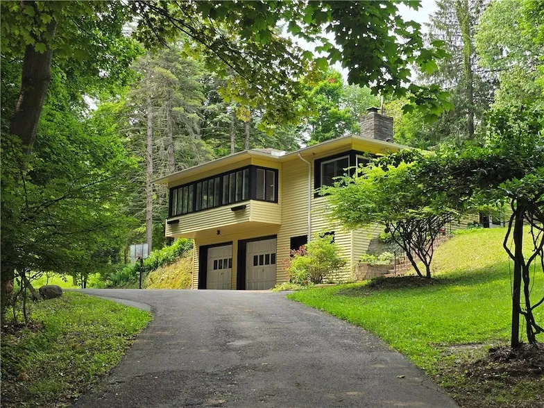 This gorgeous property presents a beautifully updated ranch-style home situated on just over 5 wooded acres with a peaceful pond, offering privacy and a serene natural setting. This 2-bedroom, 1-bathroom home features 1,492 square feet of living space, with every room recently remodeled to include modern finishes and thoughtful design throughout.A 4-car garage located beneath the home provides ample space for vehicles, storage, or workshop needs. Major mechanicals including the furnace, central A/C, and hot water tank were all replaced within the past 2 years. The full basement includes additional storage space along with a built-in storm shelter, offering extra security and utility.This property blends rural charm with convenient access to nearby amenities and major roadways, making it a distinctive and versatile opportunity. All offers due by 5pm on June 10th.