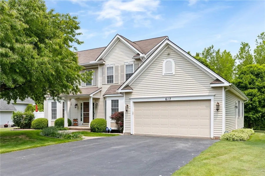 Charming Colonial in Greece with Hilton Schools! This is a special opportunity to own a true 5-bedroom home with 3 full baths. The first-floor bedroom offers flexibility and could serve as a primary bedroom, a guest bedroom, or a home office. The main level also features laundry and a full bathroom for added convenience. While currently utilized as a study, the formal dining room can easily be converted back to its original purpose. You'll be welcomed by a warm and inviting atmosphere as you enter through the front door, approached by a stamped concrete walkway. The family room provides both ambiance and gentle warmth during the colder months with its gas fireplace. The eat-in kitchen leads out to a composite deck, overlooking a serene backyard that backs to woods, perfect for entertaining or relaxing after work. On-demand water heater installed in 2022. For added peace of mind, the seller is offering a 1-year home warranty at closing. Please note that delayed negotiations are scheduled for Tuesday, June 10th at Noon. We will also be hosting an Open House this Saturday, June 7th, from 12 PM to 2 PM.
