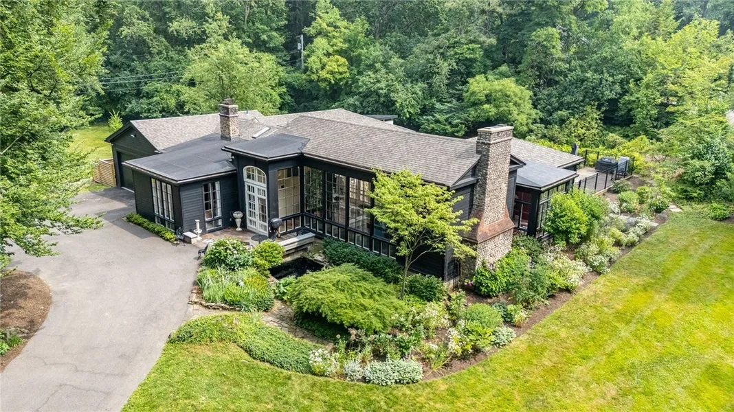 This MAGICAL house with it's unique horseshoe layout is an 'AN ABSOLUTE MUST SEE'. A stunning mid-century modern, designed by Cyril Tucker, that has a warmth unique to the genre. It has unusual architectural details giving this house a soul. Greek revival corbels lead to the pool under the deep eaves as well as one-of-a-kind woodwork details in the primary bedroom. This home was designed thoughtfully & meticulously. The windows make winter a beautiful experience, like living inside a snow globe & as everything turns green in the spring, it is glorious to enjoy the views from the large format windows. The house has many hidden cabinets & push-latch doors offering discreet storage. Terrazzo floors throughout with radiant heat add to the beauty & functionality of this stunning home. Remote controlled shades for the large picture windows in the living room were installed in 2020 with two lay...