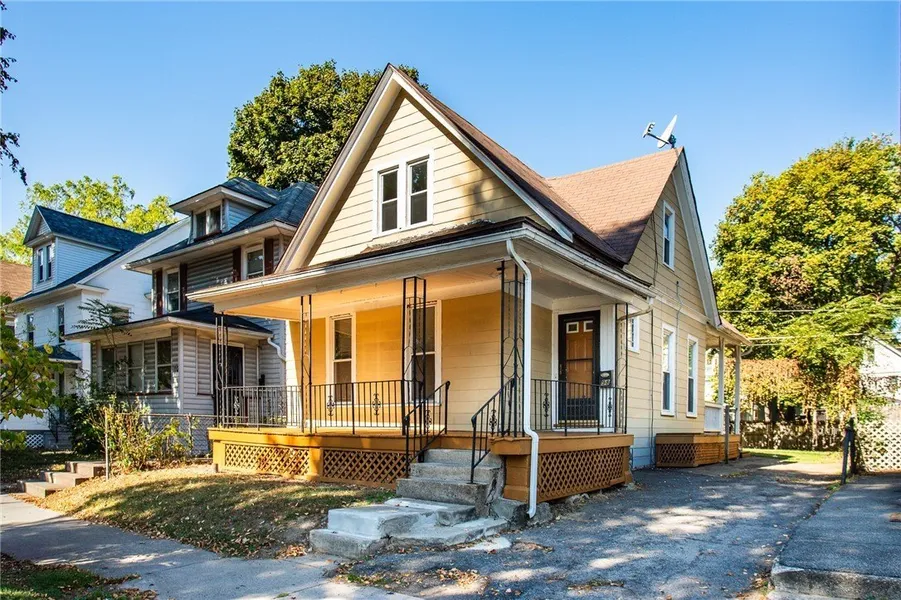 Well-Maintained Home Near the University of Rochester! Just steps from the University of Rochester, this well-cared-for home offers a flexible and functional layout. The first floor features two bedrooms, while the second level adds another bedroom and a large full bath - ideal for guests, a home office, or extra space. Outside, enjoy an open front porch off the dining room, another off the kitchen (leading to a spacious backyard), blacktop driveway, and a sturdy foundation that speaks to the home's solid construction. Inside, you'll find newer carpeting, extra long vinyl replacement windows, and generously sized bedrooms that create a comfortable living environment. Fully fenced yard and first floor laundry room. All appliances included! Beautiful hardwood flooring and stained glass entryway window. All appliances stay, including the washer and dryer, for added convenience. Recent updates include a new water heater (2023) and a roof and furnace estimated at 10 years old. Move-in ready and set in a convenient location near U of R, this property delivers value, comfort, and peace of mind. Absolutely solid house!