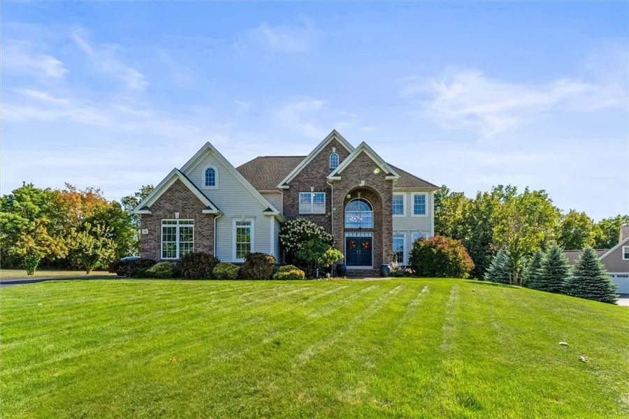 Step into a home that instantly feels special - where every detail has been designed with both elegance & livability in mind. This stunning, custom-built residence blends timeless craftsmanship, modern comfort, and rare versatility-all within the highly sought-after Spencerport School District. Nestled amid mature landscaping on a private cul-de-sac, it offers the perfect combination of sophistication and warmth. The moment you arrive, you're greeted by an awe-inspiring view that sets the tone for the entire home - soaring ceilings, rich hardwood floors, and a dramatic wall of windows flooding the great room w. natural light. An elegant staircase and catwalk above frame the space beautifully. Formal living room w. French doors offers flexibility to serve as a home office or playroom, while the formal dining room sets the stage for memorable gatherings. The heart of the home is the gourme...