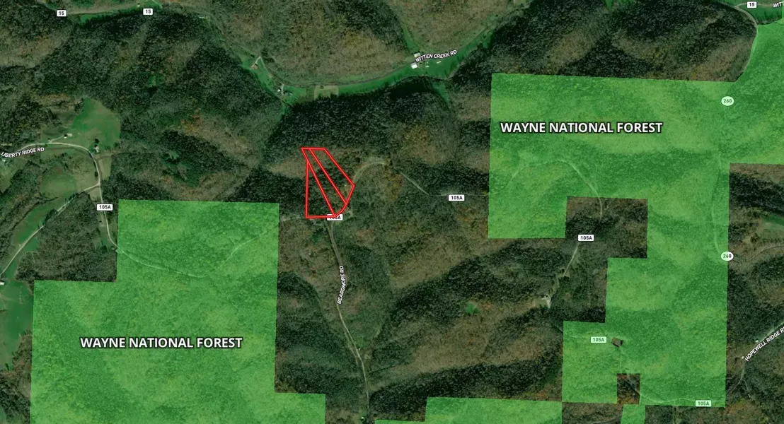 Approximately 15.02 acres of recreational land within walking distance from Wayne National Forest. Property is mostly wooded with a clear area near the Twp Rd. Driveway off of Twp Rd. leads to 12 x 20 mobile office trailer to stay in and a camper used for storage. Trailer is ready to use generator but electric is available at the pole. There are trails throughout the property along with some white oak trees. Sellers do not own mineral rights.