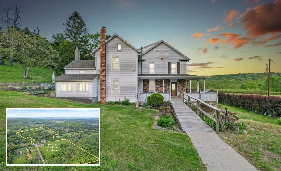 SUBSTANTIAL PRICE IMPROVEMENT!! WELCOME TO YOUR PRIVATE HOMESTEAD RETREAT on 82 ACRES of preserved Clean & Green farmland. This BHG DISTINCTIVE COLLECTION HOME is a working farm and offers a perfect blend of functionality, space, and comfort. The 2,600 sq ft home features 4 bedrooms, 3 full bathrooms, an office, and a summer kitchen-ideal for homegrown living or canning season. All bathrooms, kitchens, and living spaces have been thoughtfully updated, blending modern convenience with timeless character. Central air keeps the home comfortable year-round. The property includes a 2,100 sq ft pole barn for equipment or livestock, and a 2,400 sq ft greenhouse with its own dedicated well-ready for year-round growing. Whether you're expanding your agricultural business or seeking a self-sustaining lifestyle, this property is well-equipped and move-in ready. Tucked away yet accessible, this is t...