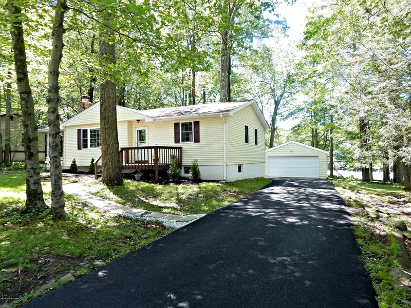 Spacious, updated and freshly painted Pocono Lake home is well maintained and move-in ready. Features 2 bedrooms, 1.5 baths, lots of storage, walk-in closet, first floor laundry room, 2 car detached garage, super long driveway fits 7 cars, 2 decks, huge basement with family room with 2 multi-purpose rooms and outside entrance. A few updates from a long list include new architectural roof, new driveway, new kitchen/laundry appliances, new kitchen/bath floors, new kitchen counter top, new kitchentravertine stone back-splash, new faucets, new bath vanity top, 2 new toilets, new garage door and remote opener, new well pump and pressure tank. Please contact listing agent for the full list of updates. Located in Locust Lake Village, a Gold Star community with 4 lakes and numerous all year adventures/activities. Bring your best offer and enjoy wonderful memories in this home today!