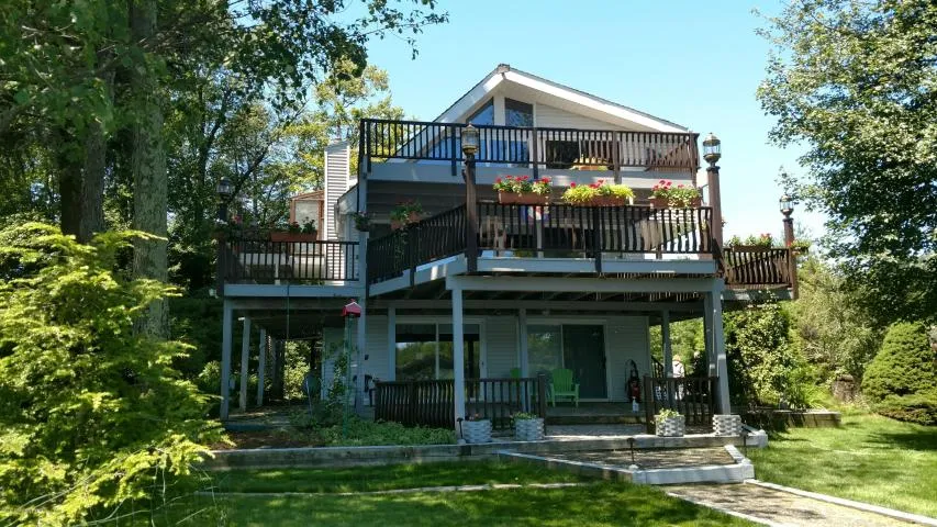 Private peninsula with over 700 Ft of lake frontage, landscaped grounds. Breathtaking panoramic views of the lake. Estate boasts over 2900SF, 2 stone fireplaces, T&G redwood cedar railings, over 1800SF of decks & balconies for outdoor entertaining. IPE wood upper deck, hardwood flooring, ceramic tile, cedar shake roof, Amish Country Gazebo, dock, 6 Car Garage w/ 2nd story for storage. Home offers 4BR/2.5BA, LL FR has 3/4'' solid cedar panels and exposed beams, natural light through all the windows and sliders to patio. The MBR with private sunroom, large loft with so much light! Generator, alarm system, 4 camera external security system. The list of features with this home goes on and on. Call for your appointment today!