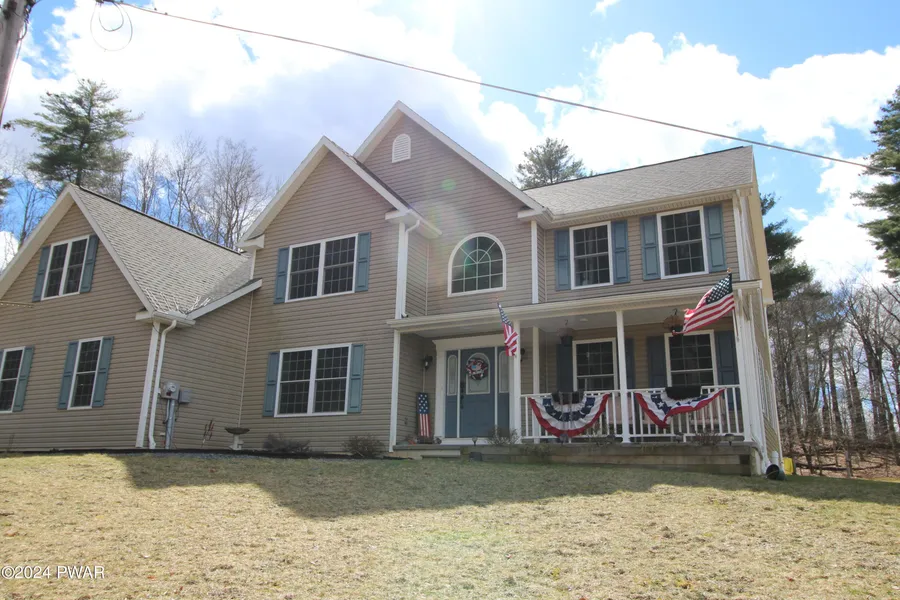 NEW PRICE!!! Located in the Heart Of The Poconos * 5-Bedroom 3-Bath Custom Colonial * Cathedral Ceiling upon entering Foyer Area into this well kept SECRET. Heated Garages Galore * Wood Flooring Thru-out * Formal Dining * Family Room * TV Room * New Kitchen with Granite Countertops * Kitchen Island * Stainless Appliances * Covered Front Porch * Master Bedroom * Master Bath with 2-Person tub.