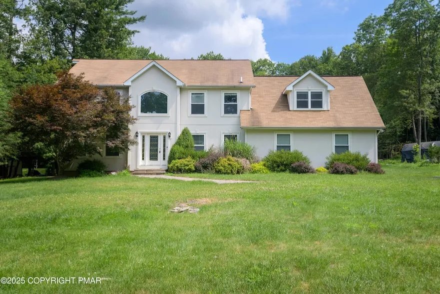 Welcome to your new home nestled on just over an acre of land offering room to grow, entertain, and relax! Step through the front door and be greeted by a bright formal dining room to one side and a living room to the other. French doors open to a cozy family room featuring a stunning stone-faced fireplace, seamlessly flowing into the open-concept kitchen and dining area. The kitchen is a chef's dream with stainless steel appliances, a center island, and ample cabinet space. Enjoy meals with a view through the sliding glass doors from the dining area that lead out to the back deck and spacious backyard, perfect for hosting friends and family. The main level also includes a convenient half bath and laundry room. Upstairs, you'll find three spacious bedrooms that share a full bath. The primary suite is a retreat of its own, featuring a fireplace, double vanity, soaking jetted tub, and stall shower. Just beyond is a bonus room with walk-in closet, offering the potential for a fifth bedroom, nursery, office, or private sitting room. Need more space? One bedroom leads to a walk-up attic unfinished but full of opportunity. The basement is also unfinished, ready for storage or to be transformed into additional living space. Don't miss this versatile, well-laid-out home with tons of potential and plenty of space both inside and out.