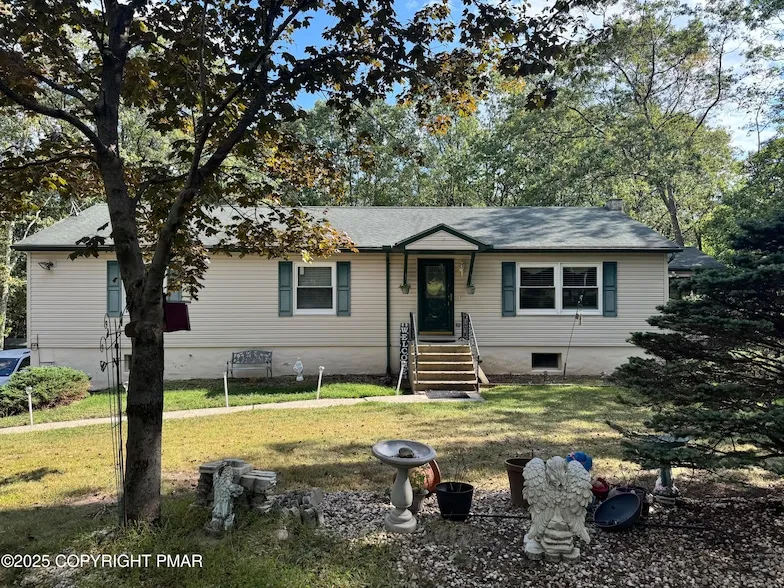 Welcome to Birch Hollow Estates, where comfort meets convenience. This spacious ranch home with a finished basement sits on its own 1-acre lot, offering privacy, outdoor space, and community amenities all in one. The main level features three generous bedrooms, including a primary suite with its own bathroom, plus an additional full bath. The layout flows seamlessly from the living room to the dining area, which opens onto a back deck perfect for entertaining. A bright sunroom with a second deck access provides even more space to relax and enjoy views of the flat backyard. The kitchen is ideally situated to serve both the dining and sunroom areas, making gatherings effortless. The finished basement expands your living possibilities with a versatile rec room, family room, or flex space, a third bathroom, and abundant storage. From here, you'll also find convenient access to the attached 2-car garage. Come and make this your own. As part of Birch Hollow Estates, residents enjoy a clubhouse, pool, pickle ball, tennis, basketball, and playground, creating a true community atmosphere while maintaining the privacy of your own acre of land. Whether you're looking for space to spread out, entertain, or simply enjoy peaceful surroundings, this home offers the best of both worlds.