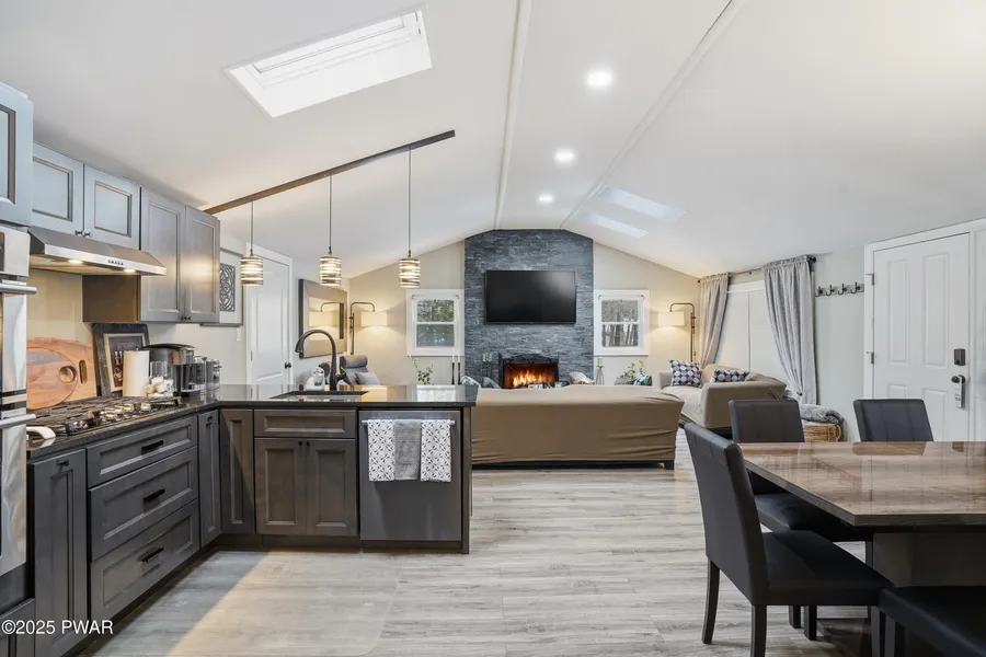 Escape to a turn-key Pocono retreat where vaulted ceilings, an open-concept living space, and a stone fireplace create the perfect setting for year-round relaxation and entertaining. Designed for gathering, the home offers generous sleeping capacity, seamless indoor-outdoor flow, and multiple spaces to unwind after a day at the lake, slopes, or trails. Whether you're seeking a personal getaway or a property with strong short-term rental appeal, this home delivers comfort, flexibility, and lifestyle. The heart of the home is the bright, open living area featuring soaring vaulted ceilings, skylights, and a striking stone fireplace, an inviting space that comfortably accommodates family and guests alike. The open layout flows effortlessly into the kitchen and dining area, making hosting easy and everyday living feel spacious and connected. Sleeping arrangements are thoughtfully designed to ...