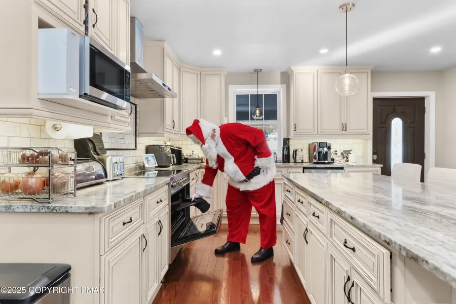 This stunning home in Stroudsburg SD has been completely REMODELED with high-end modern finishes throughout, 6 bedrooms, 5 full bathrooms, and 2 half baths, there's space for everyone and HIGH-END finishes throughout. TWO Primary Bedroom with en-suite baths, PLUS a large bonus room over the garage with a separate entrance offers the perfect guest suite, home office, or in-law suite with additional bedroom and full bath, and 1st floor laundry, offering flexibility for extended family / parents or guests. At the heart of the home is an OPEN CONCEPT Great Room with an abundance of light surrounded by windows, seating, fireplace and dining options. The spacious, designer kitchen with granite countertops, 42'' luxury cabinets, large island, stainless steel appliances, double pantry cabinets and walk-in pantry. Hardwood floors flow throughout both levels, modern bathrooms, high-efficiency heat...