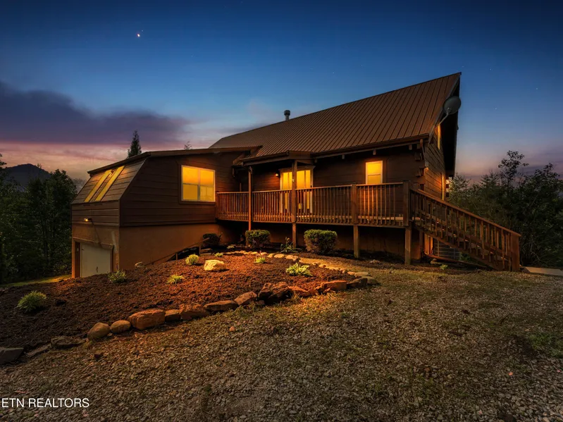 Come Home and relax to your wood cabin style custom home with complimentary modern touches and charm. . Sitting on 5+ acres in Vonore overlooking mountain and lake views. As you enter a large welcoming foyer that leads into the heart of the home you will be awed by the warmth and ease of the layout. Open Kitchen floor plan having higher end stainless steel appliances connecting to a Great Room with 25' soaring high beamed ceilings with a wrap-around 2-sided floor to ceiling seashell encased stone fireplace, this is unique. Also included is the Caribbean wide wood board flooring plus floor to ceiling windows revealing the beautiful mountain and lake views. Enter the 20X20 Sunroom with custom arched beams and 18 inch imported tile (also in kitchen and foyer). Main level Master Suite w/dbl closets & walk-in shower. Upper level includes 2nd Master Suite w/walk-in shower & balcony, large loft/home office ( with high-speed internet and cell service availability) w/built ins. Lower level has an office or make into a bedroom, full bathroom with walk in shower, Home Gym, Workshop, w/ample storage and room to grow. All the above with wraparound porches/decks to sit, enjoy and relax. Also property is convenient to marinas, fishing, boating, shopping, airport and medical facilities just minutes away. New HVAC (2023) Kitchen Range Appliance (2023), (Billiard Table Conveys ($3500 has receipt)). Shared Driveway with Maintenance Agreement. Has Restrictions. Available upon Request. Please see property disclosures and documents. Buyer is responsible to understand during the due diligence period.