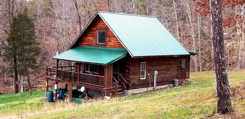 Camp David is in Wild and Wonderful Monroe County West Virginia, near the village of Greenville. The property is a 2005 era construction of an Appalachian Log Home package from Princeton. The cabin has one bedroom plus a loft area, single bath, living room and an eat in kitchen. A dashed blue line branch follows an meanders the eastern side boundary. Enjoy a quieter life at Camp David with all the comforts of fine country living in a county where cattle outnumber people and the nearest stop light and 4 lane roads are in the adjoining counties and across the Virginia line at Rich Creek.