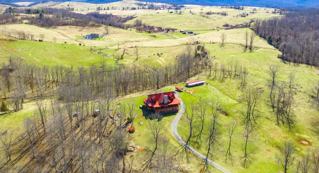 Just 5 minutes South of Union, WV this property has all of the must have amenities for a luxury country home. The property sits in a beautiful location amongst the big farms and rolling hills of Monroe County with good neighbors and pastoral scenery. With over 40 acres and a year round stream, this property has plenty of room to play, grow your own food, raise livestock, and enjoy the privacy you are seeking. This large and modern timber frame home features a Great room with a 24 foot high ceiling and fireplace, a chef's kitchen with granite counter tops & a large island, and 360 degree wrap around covered porches.