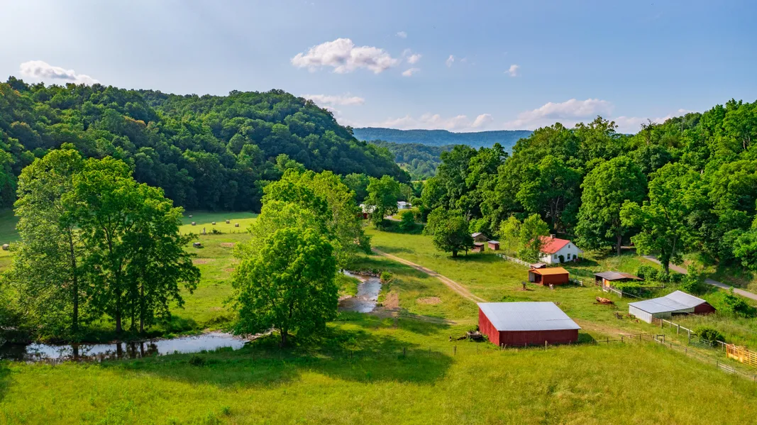 The 54.26+/- acre Old Turkey Creek Farmstead is a multi-use farming and recreational property with residential possibilities located in the heart of Monroe County just south of the county seat in Union. Established several generations ago, this property has been used to raise cattle, sheep and various crops over the years. A prominent feature of the farm, Turkey Creek runs through the middle of the property for about 1800 feet, or a third of a mile. A broad stream generally 20 feet in width, Turkey Creek has provided water for livestock over the years and sustains other aquatic life with opportunities for fishing. In recent years the farm has primarily been used for cattle and has fencing and cross fencing to support operations. The old home has been in disuse for nearly a decade but could either be brought back to life or repurposed for a new project. The red metal roof seems to be in good condition and has helped keep the home stable over the years. A number of structures aid in the farming operations including a barn and sheds. The old corn crib stands near the home as a testament to days gone by.