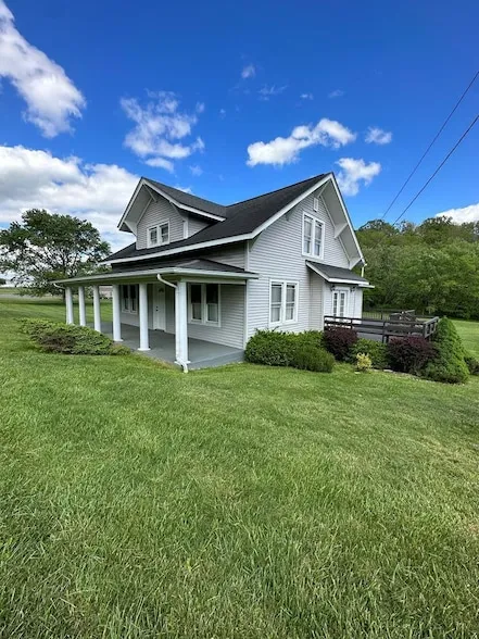 This beautiful two-story home blends vintage character with modern comfort! Featuring 3 cozy bedrooms and 2 bathrooms, this home offers ample space for family and guests. You'll love the convenience of an eat-in kitchen, as well as a formal dining room. The den and office provide flexible spaces for work or relaxation, while the huge closets offer plenty of storage. Step outside to enjoy the deck/patio area, ideal for entertaining or simply soaking up the serene surroundings. The property includes a partial unfinished basement, a two-car detached garage, and two outbuildings, all situated on a sprawling 3.39-acre lot that slopes to a mostly flat terrain. This place has endless potential!
