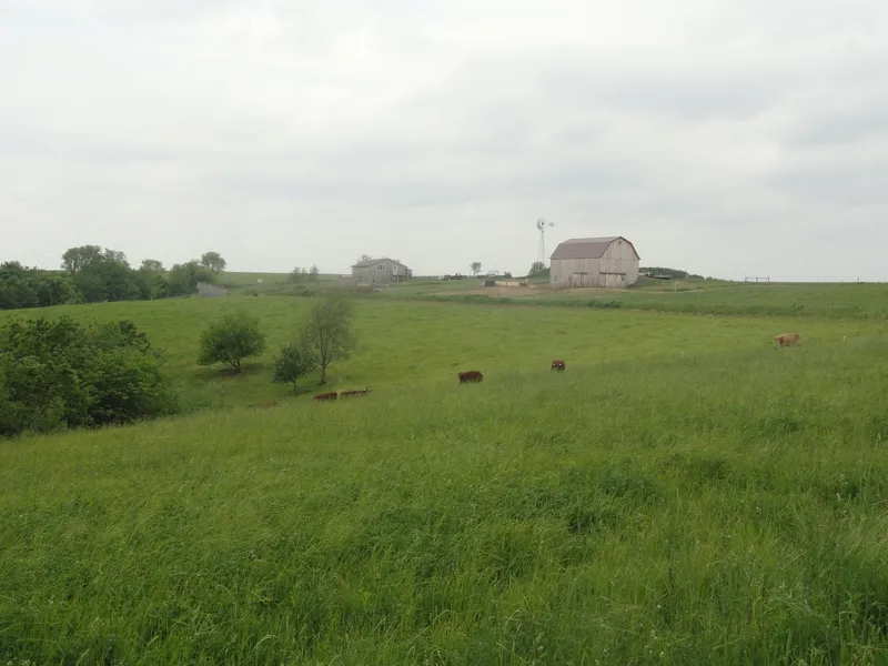 The land consists of 25 organic tillable acres with the balance in woods. There are 2300 feet of permaculture designed hedge composed of a mixture of native and edible shrubs and trees, including elderberry, hazelnut, apples, aronia, cherries, plums, and mulberry. There is an established asparagus patch and young apple orchard. Recently permanent fencing was installed on three sides of the property. Deer and turkey are abundant for prime hunting opportunities.